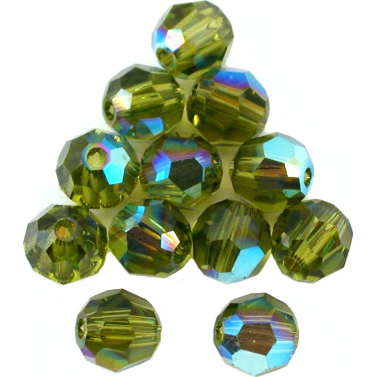- This is a new set of 12 beautiful olivine machine cut Swarovski round crystal beads with an Ab finish