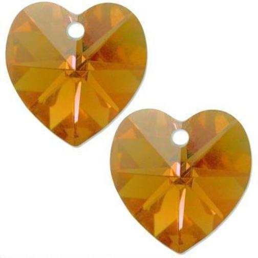 - This is a new set of 2 beautiful topaz machine cut Swarovski heart crystal pendants with an Ab finish