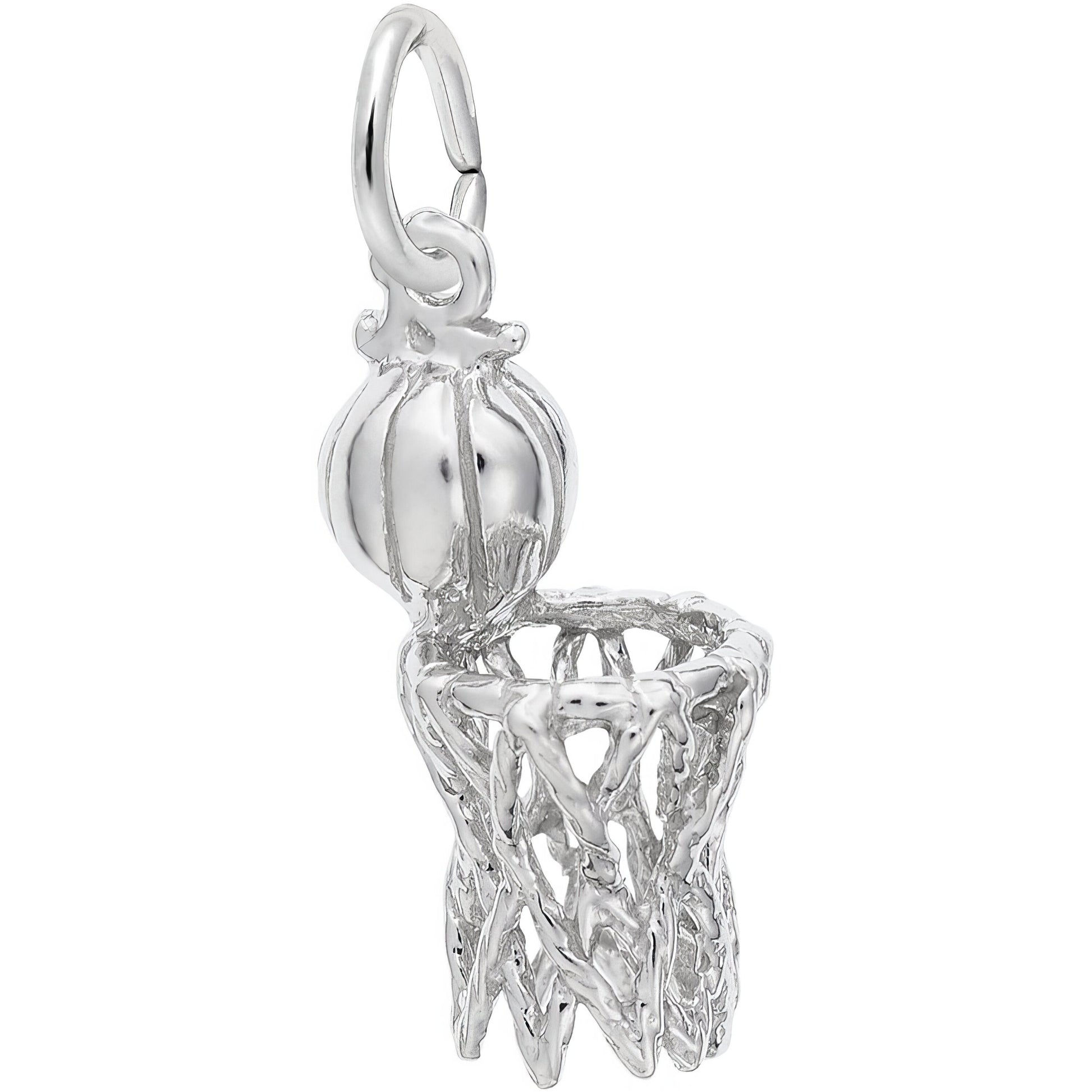 Sterling Silver Hoop & Net Charm - 17mm x 10mm. Height: 17mm, Width: 10mm, Weight: 2.98g.